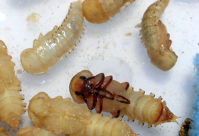 ちょうど、蛹になりたてのコと、羽化直前のコがいたので